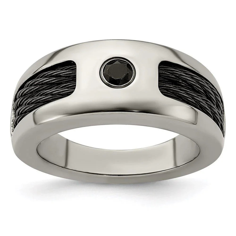 Edward Mirell Titanium Double Cable and Black Spinel with Sterling Silver Bezel 8mm Band