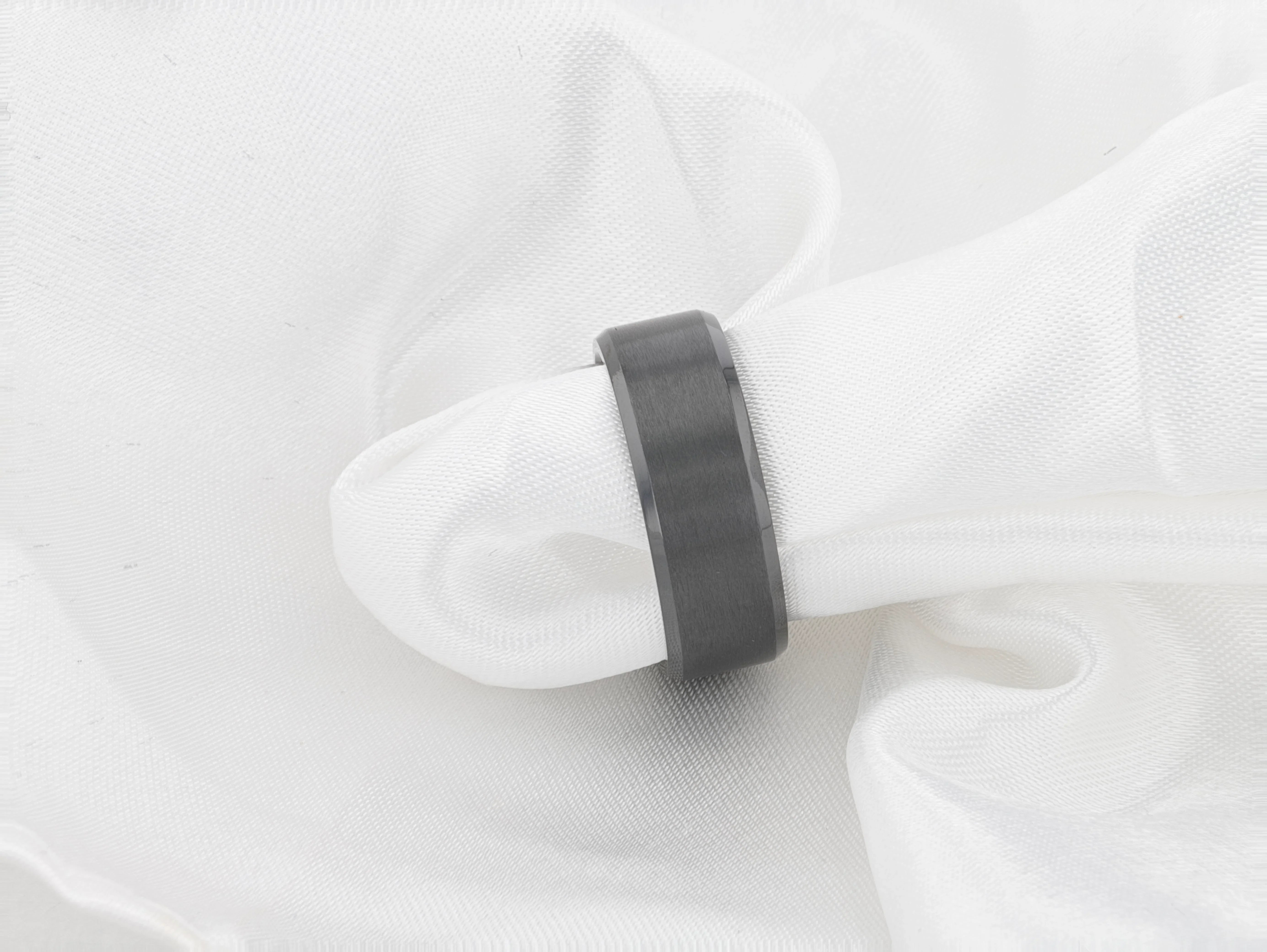 ELYSIAN Black Titanium Ring with Polished Beveled Edges and Brush Finished Center - 8mm