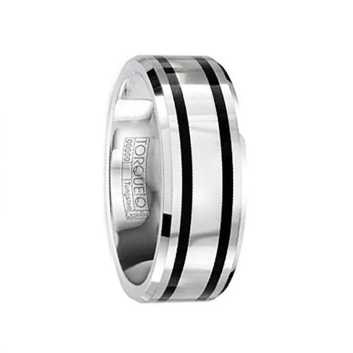 Tungsten Carbide Wedding Band with Black Enamel Inlay and Polished Finish - 8mm