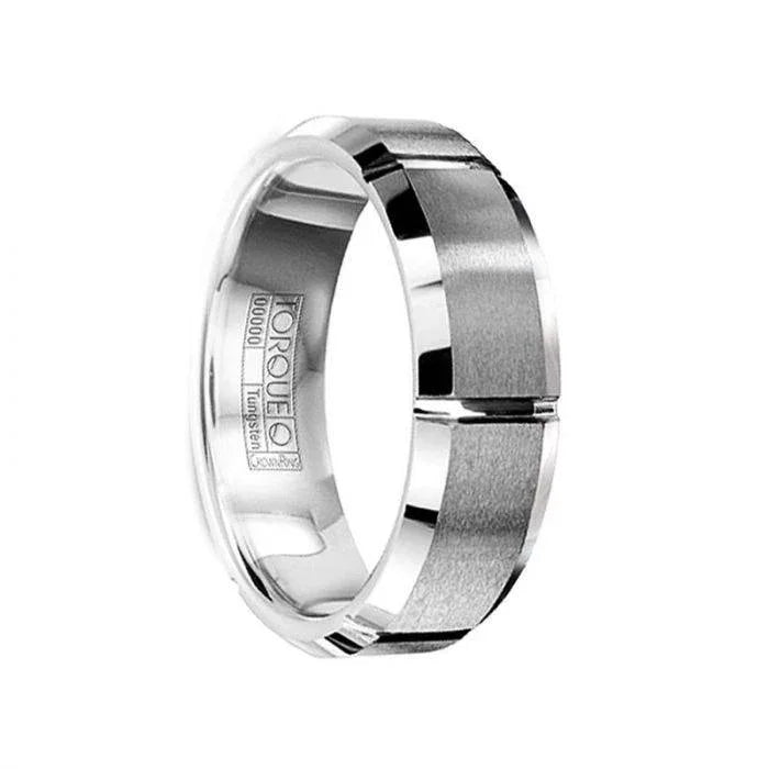 FABRICIUS Tungsten Carbide Wedding Band with Brushed Center & Horizontal Grooves - 7mm