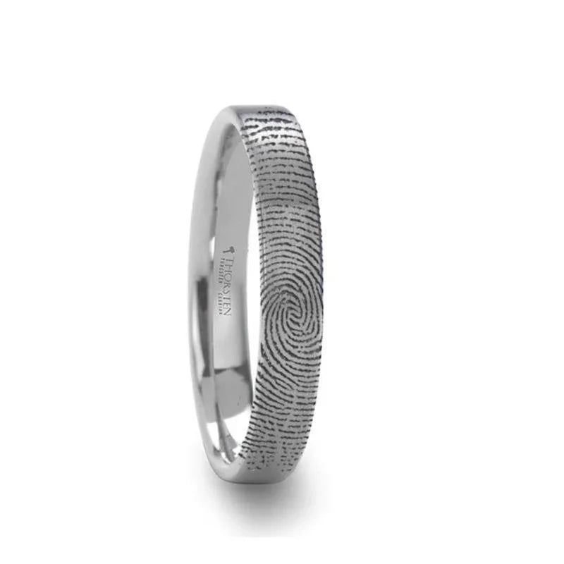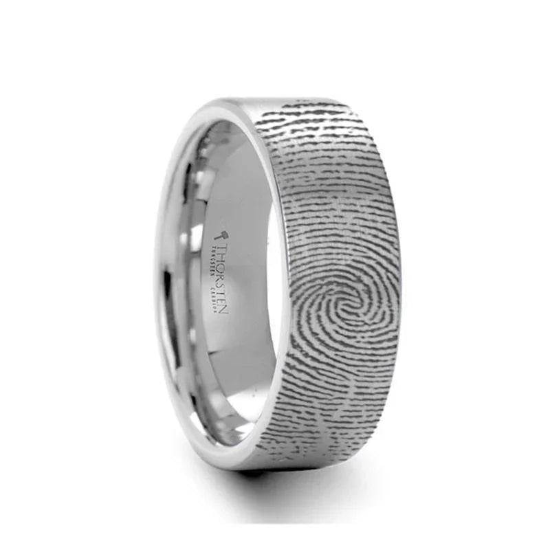Fingerprint Engraved Flat Pipe Cut Tungsten Ring Brushed Ring - 4mm - 12mm