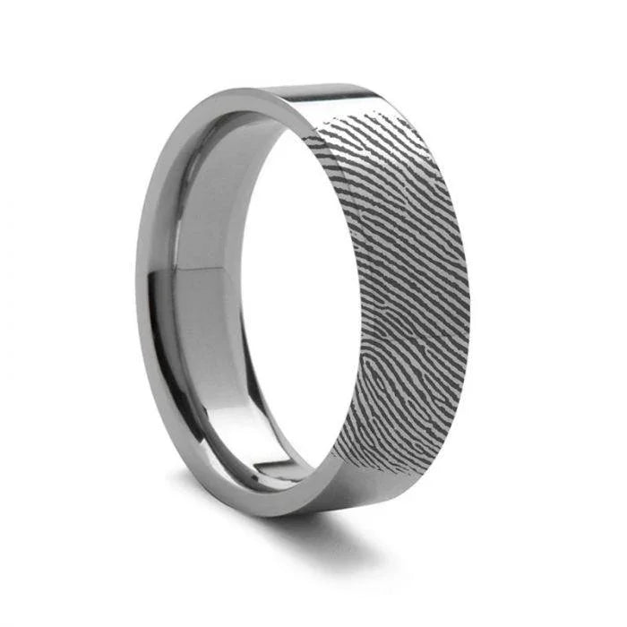 Fingerprint Ring Palladium 950 Flat Engraved Band - 2mm - 12mm Customize this precision crafted ring from our line of Flat Pipe-Cut Palladium Rings with a fingerprint of you, or your loved one. Fingerprints can be engraved on the inside or outside of this band, all fingerprints are engraved on the outside of the band unless specifically stated in your order notes. This ring style is available in 2mm, 2.50mm, 3mm, 4mm, 5mm, 6mm, 7mm, 8mm, 9mm, 10mm and 12mm widths. It can be worn as a Wedding Ring or Promise Ring by men or women.