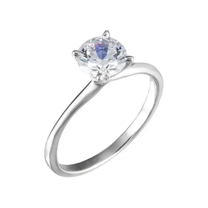 FIONA This classically beautiful yet simple engagement ring is from our line of Engagement Rings . This style has a 6.5 mm wide stone setting, which is equivalent to the size of a 1 carat diamond. Founded in 1895, Swarovski is the authority on creating the world's highest quality crystals and gemstones, which are incorporated by the biggest designers in the world of fashion and jewelry. The ring itself measures approximately 2 mm wide and has a brightly polished finish. This style can be made in 14k gold, 18k gold, Silver and Platinum. Different colors and sizes of stones are also available. The center diamond is certified for authenticity by a third-party grading laboratory and is engraved with the certificate number.