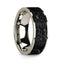 Flat Polished 14k White Gold Wedding Ring with Genuine Lava Rock Inlay - 8 mm