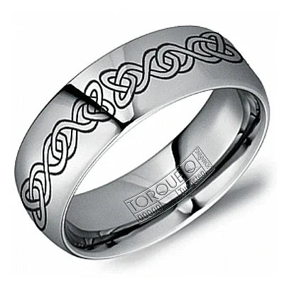 Polished Tungsten Carbide Wedding Band with Engraved Celtic Pattern - 8mm