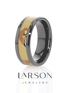 This bold and scratch-resistant Black Ceramic wedding band by Thorsten is the first camo ring on the market to be made with real military style desert camouflage design and would make an exceptional wedding band for those in the military, hunters, and other outdoor enthusiasts.