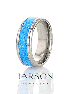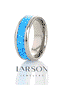 This exceptional ring is complimented with Blue Green Opal inlay. The ring has polished beveled edges and has an inlay of beautiful laboratory grown blue-green opal.