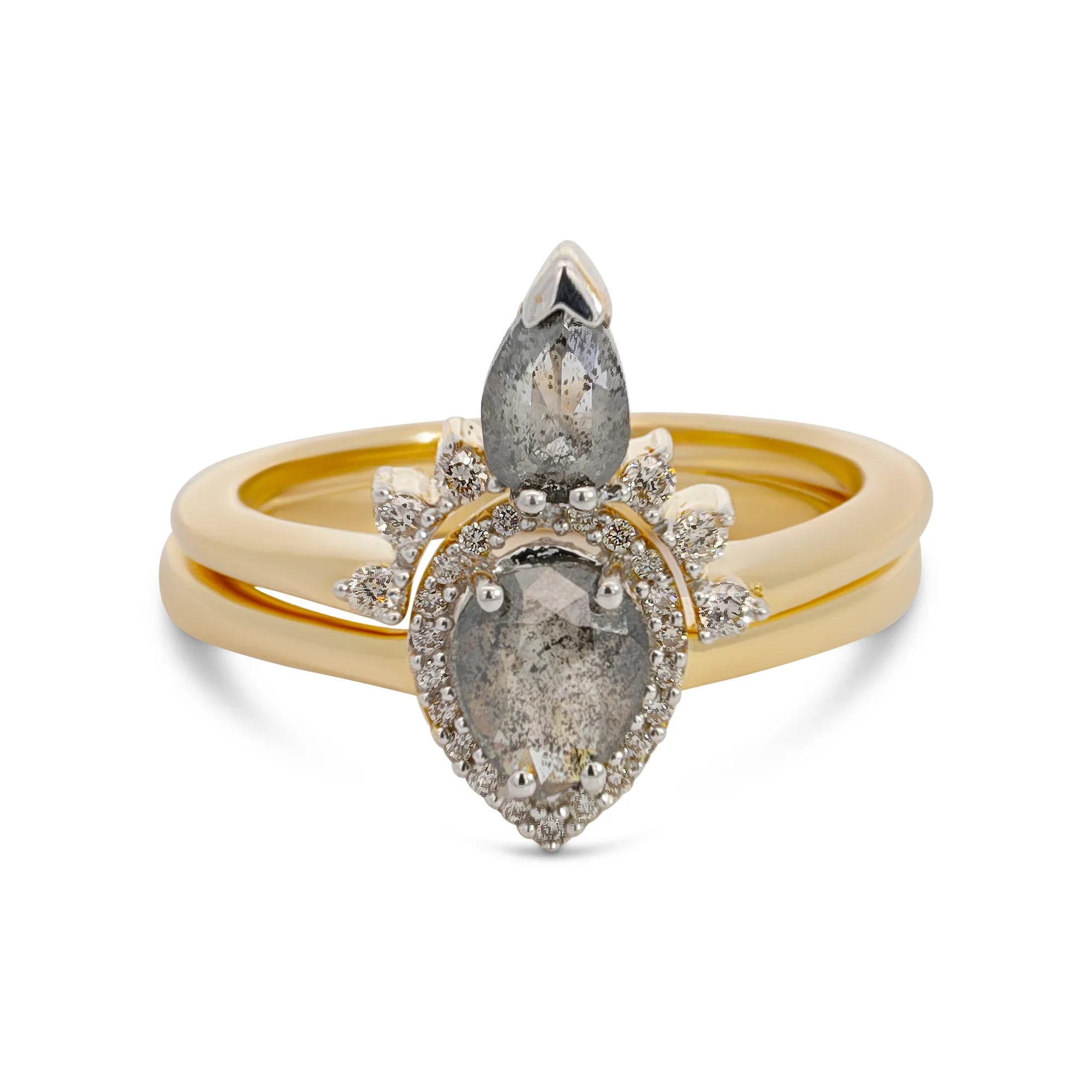 GIANNA 1.14ct 14K Gold Natural Salt & Pepper Diamond Engagement Ring With Matching Band