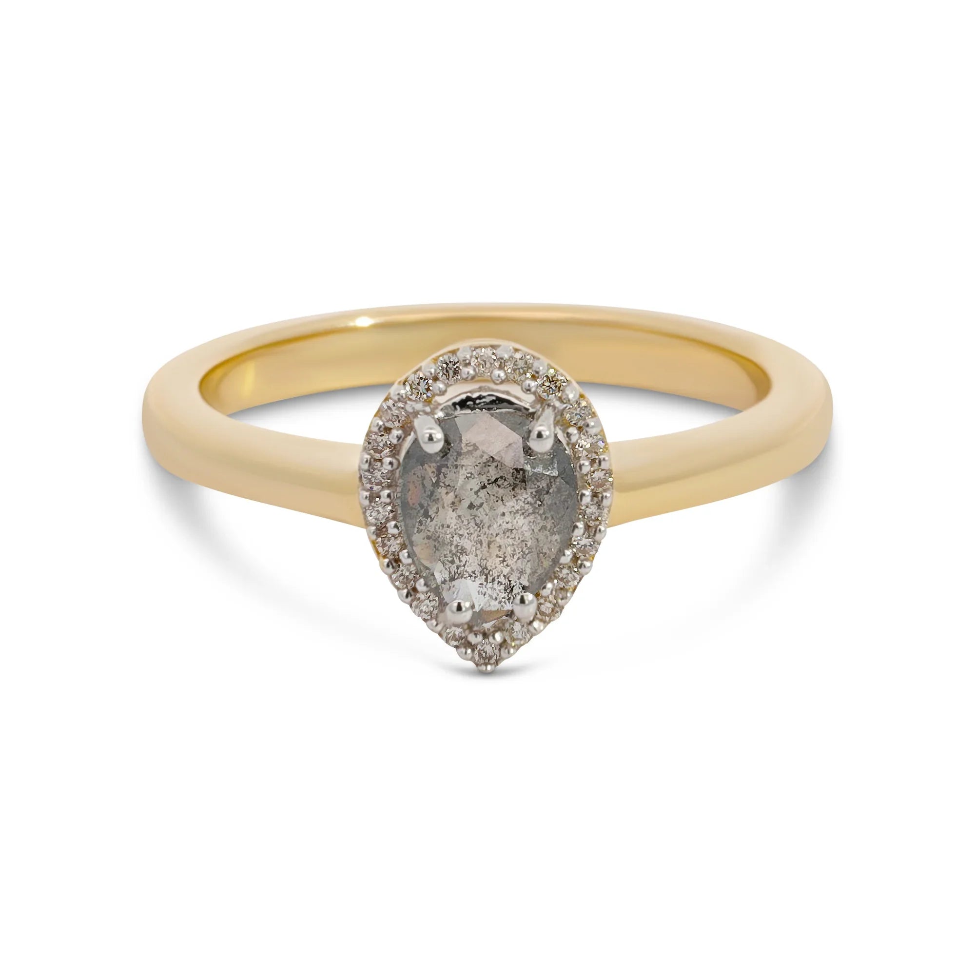 Introducing a timeless symbol of love with a twist of individuality - our 1.14 ct Salt & Pepper Diamond Engagement Ring in radiant yellow gold. Crafted to capture hearts and ignite conversations, this exquisite ring is more than just a symbol of commitment; it's an expression of unique beauty and enduring love.