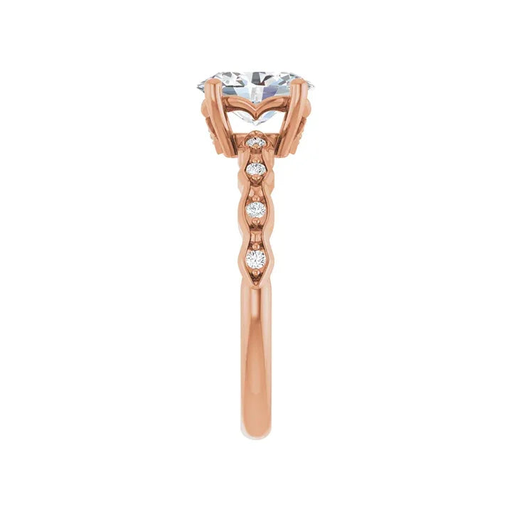 Experience luxury with the GIANNA 14K Rose Gold Lab Grown Diamond Engagement Ring. The polished gold finish showcases the stunning oval lab grown diamond, making it a perfect choice for a sophisticated look. Crafted with high-quality 14K rose gold and expertly manufactured by Stuller, this ring radiates elegance and beauty. The center diamond is certified for authenticity by a third-party grading laboratory and is engraved with the certificate number.