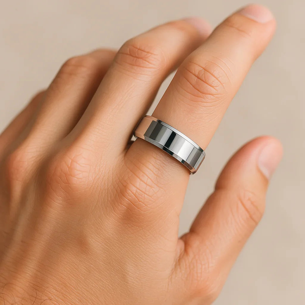 Tungsten Carbide Ring with Reflective Polished Finish and Beveled Edges by Triton Rings - 8 mm