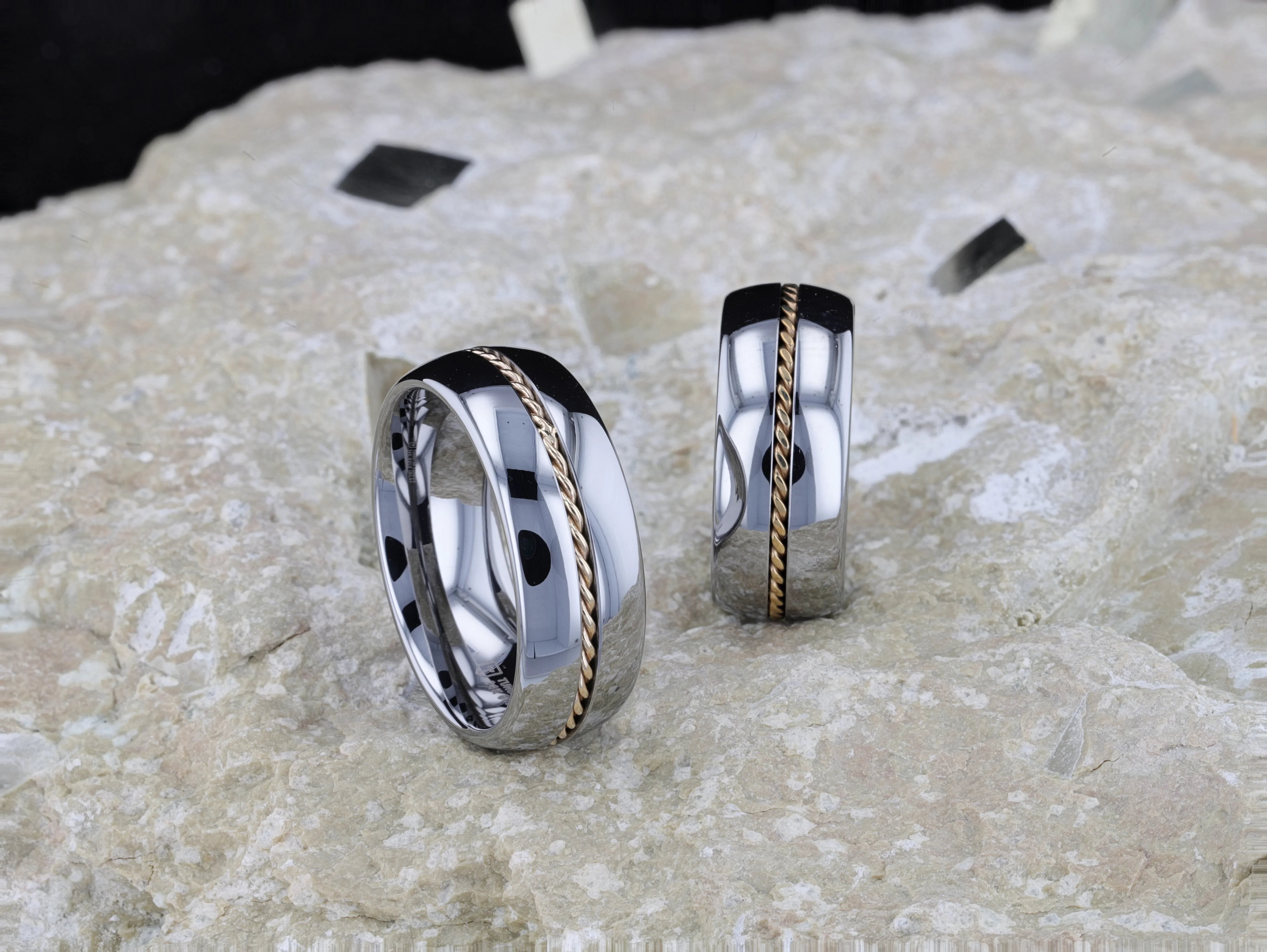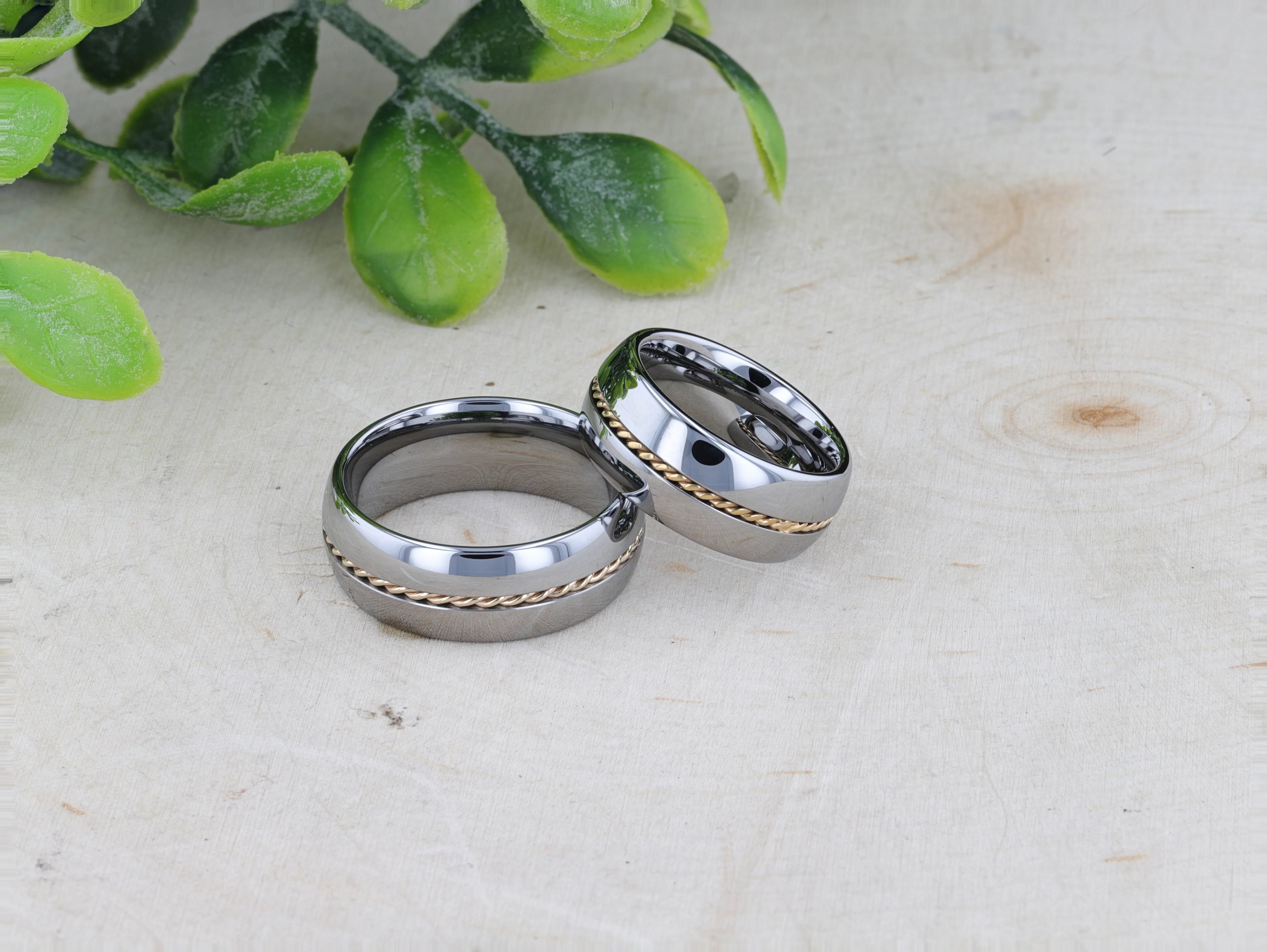GOLDWYN Braided 14k Gold Inlay Domed Tungsten Ring - 6mm or 8mm