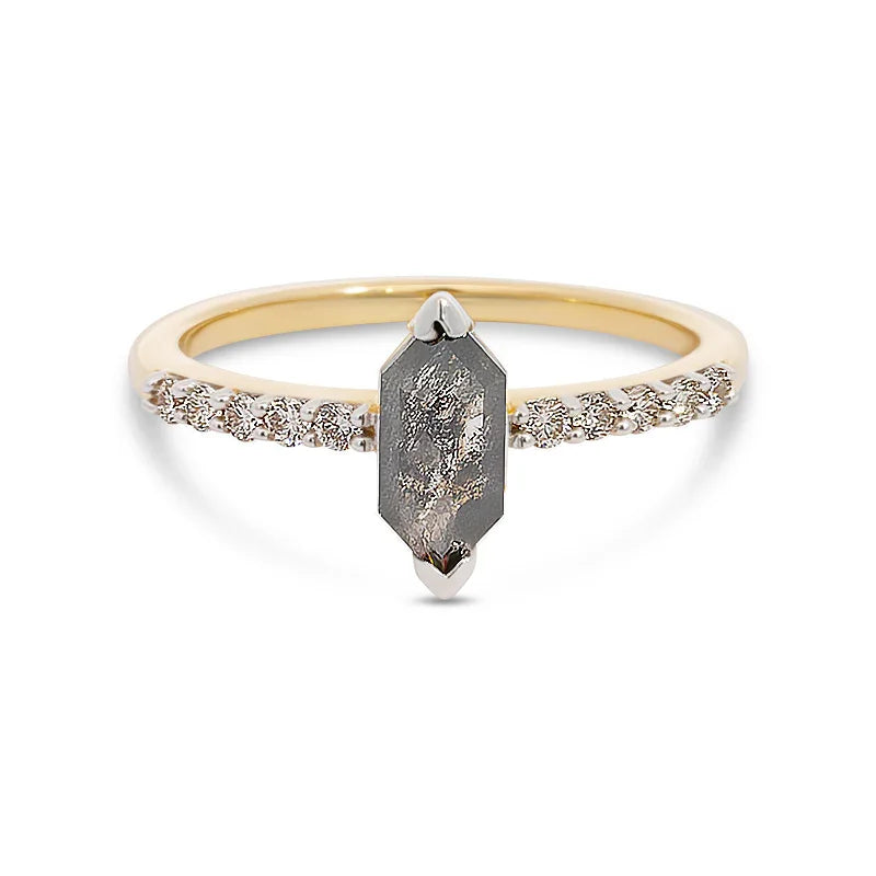 GRISEL 0.91ct 14K Gold Natural Marquise Salt & Pepper Diamond Engagement Ring