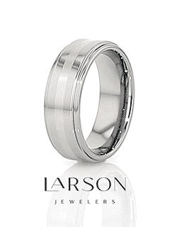 This classically beautiful Tungsten Carbide wedding band design features a raised center combines the color of tungsten with a 2mm wide inlay of rich solid Palladium.
