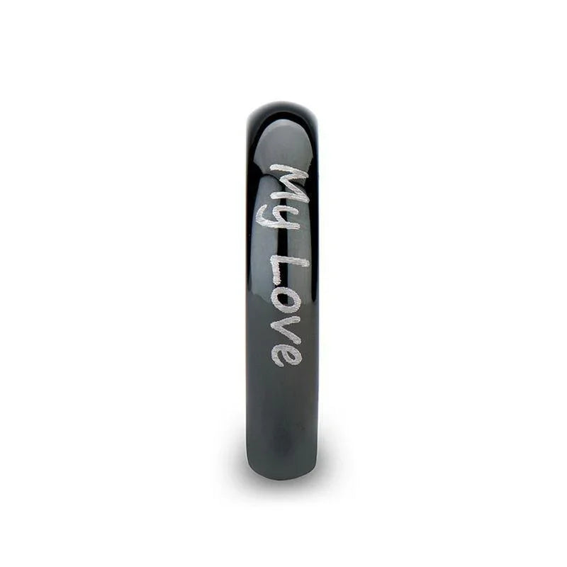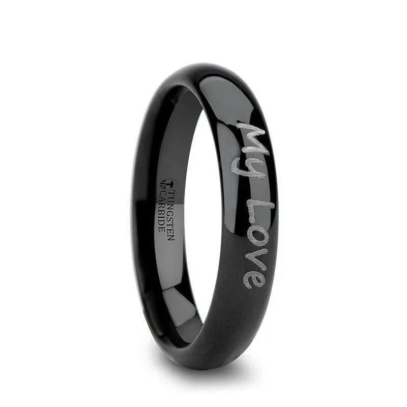Handwritten Engraved Domed Black Tungsten Ring Polished - 4mm - 12mm