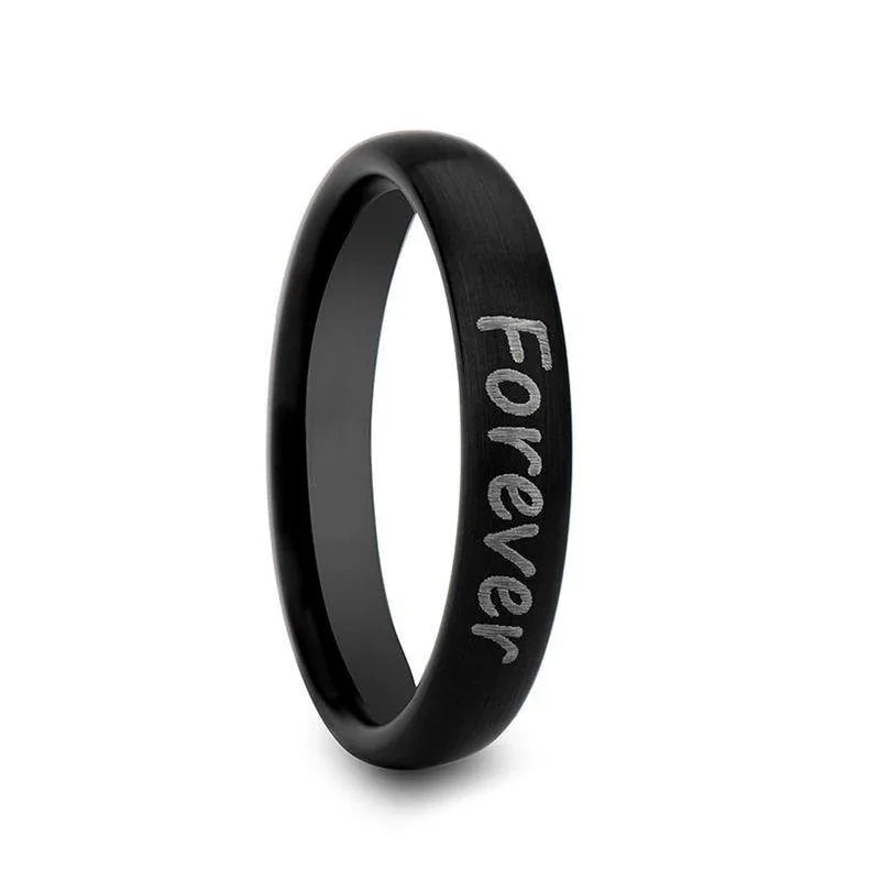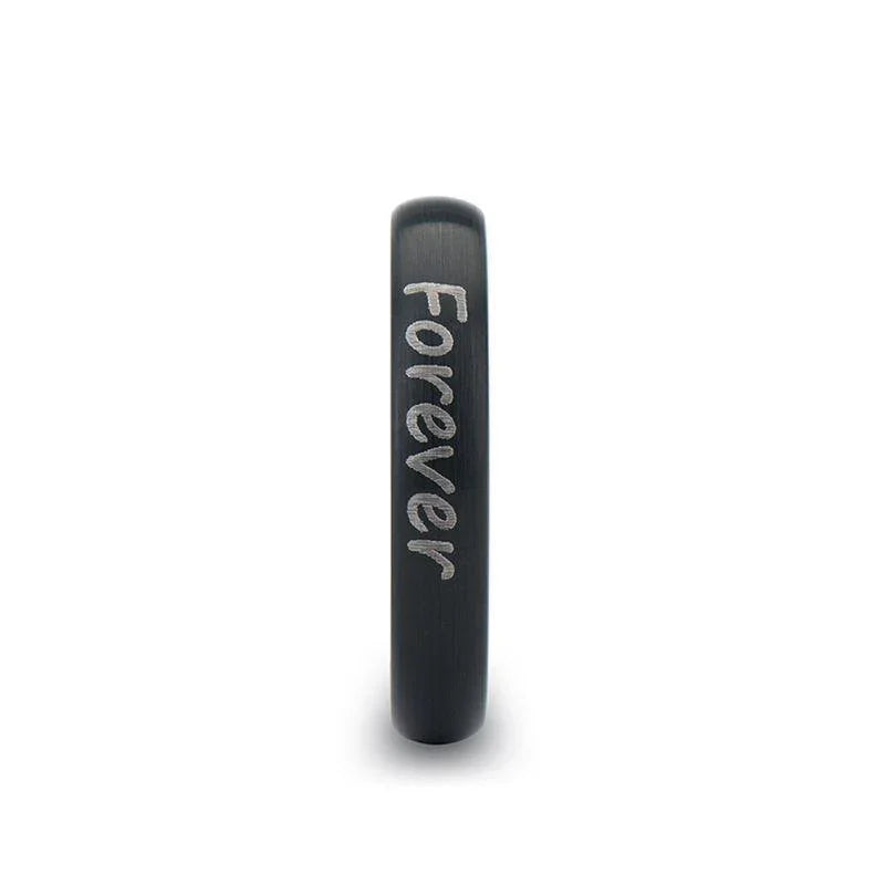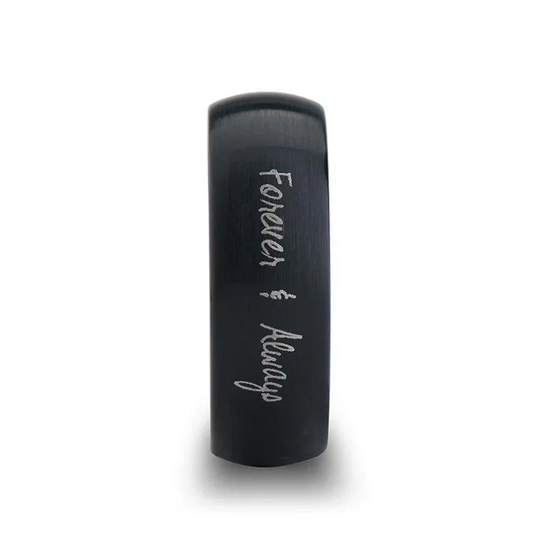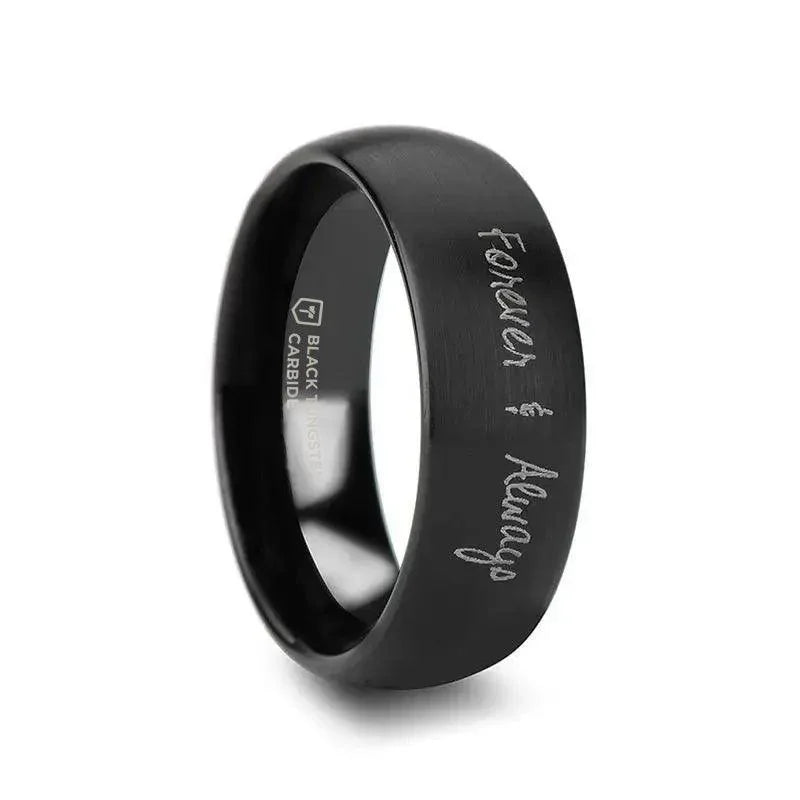 Handwritten Engraved Domed Black Tungsten Ring with Brushed Finish - 4mm - 12mm