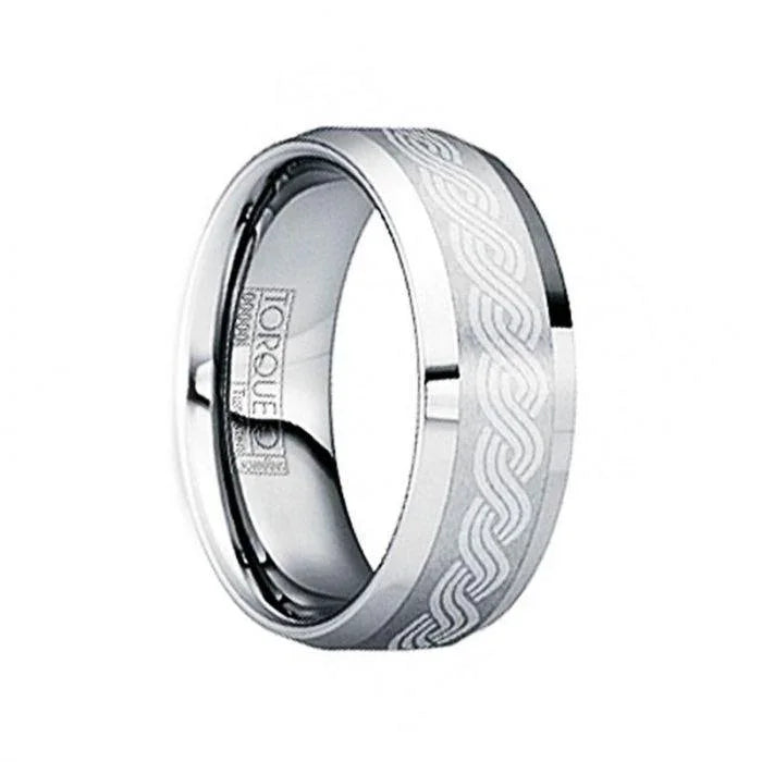 Tungsten Wedding Ring with Brushed Celtic Center and Polished Edges - 8mm