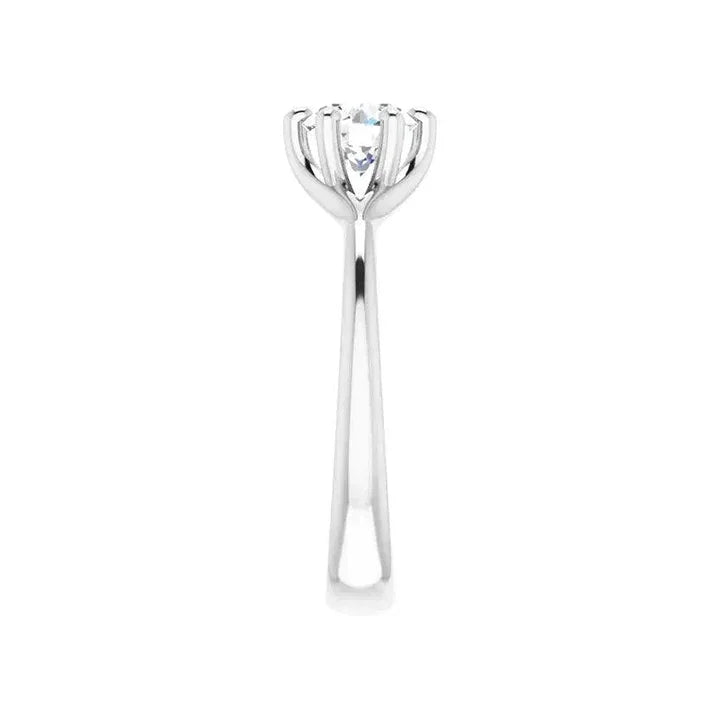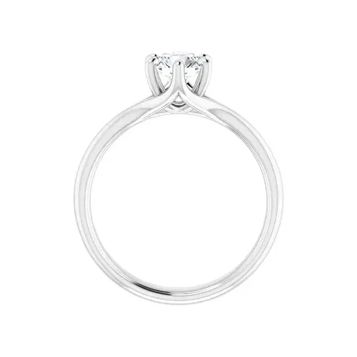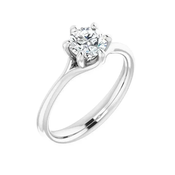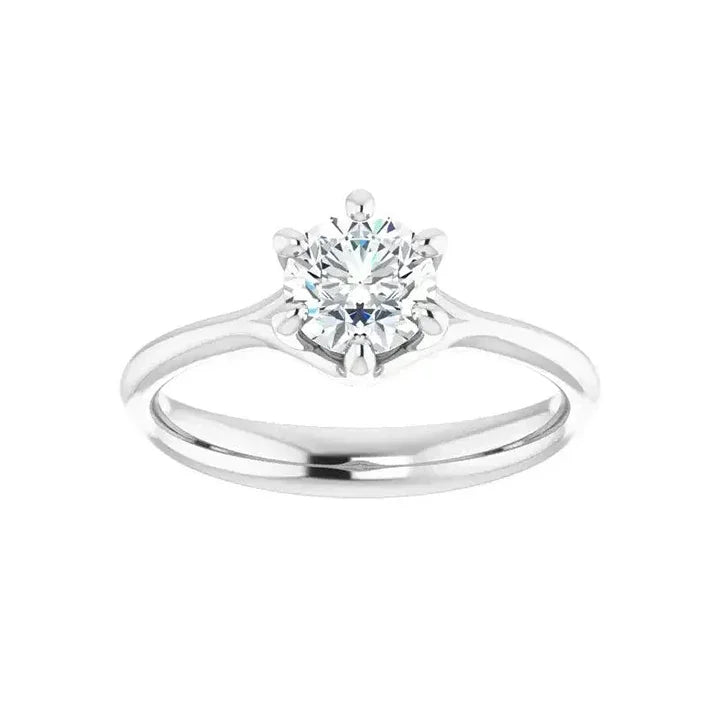 HONORA Lab Diamond Engagement Ring This simple yet elegant engagement ring is from our line of Engagement Rings . This classic style ring is set with a round 5.8 mm wide round cut stone, which is equivalent to the size of a 0.75 carat diamond. Founded in 1895, Swarovski is the authority on creating the world's highest quality crystals and gemstones, which are incorporated by the biggest designers in the world of fashion and jewelry. The ring itself measures approximately 2.5 mm wide and has a brightly polished finish. This style can be made in 14k and 18k gold, platinum, and silver. The center diamond is certified for authenticity by a third-party grading laboratory and is engraved with the certificate number.