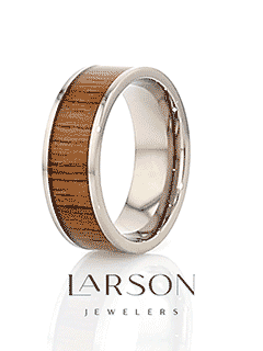 - This flat comfort fit wood inlaid titanium ring is available in 8mm width.