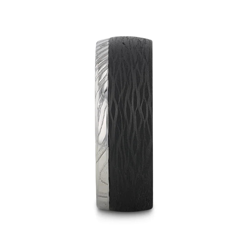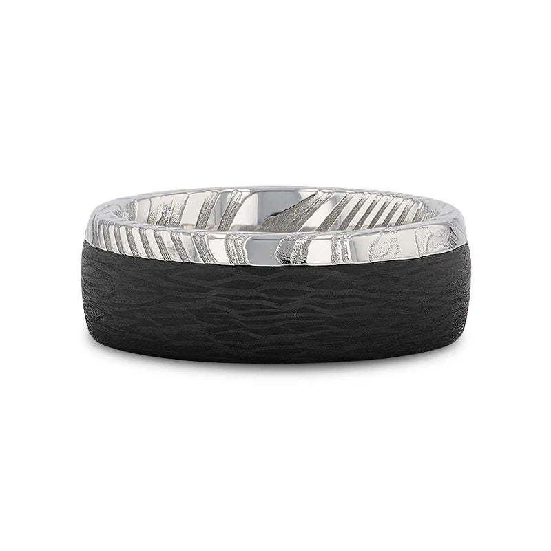 HUDSON Damascus Steel Ring with Wavy Carbon Fiber Inlay - 8mm