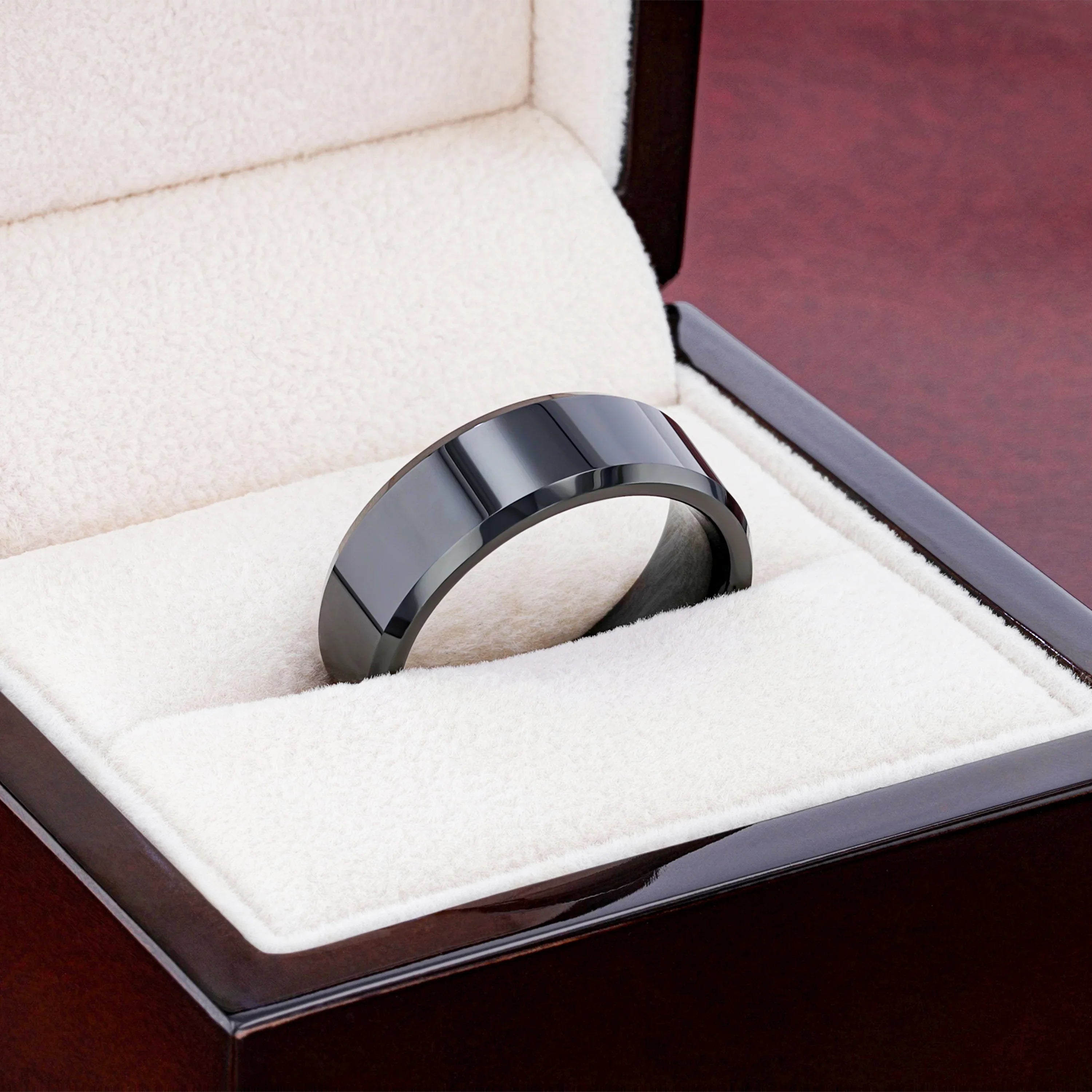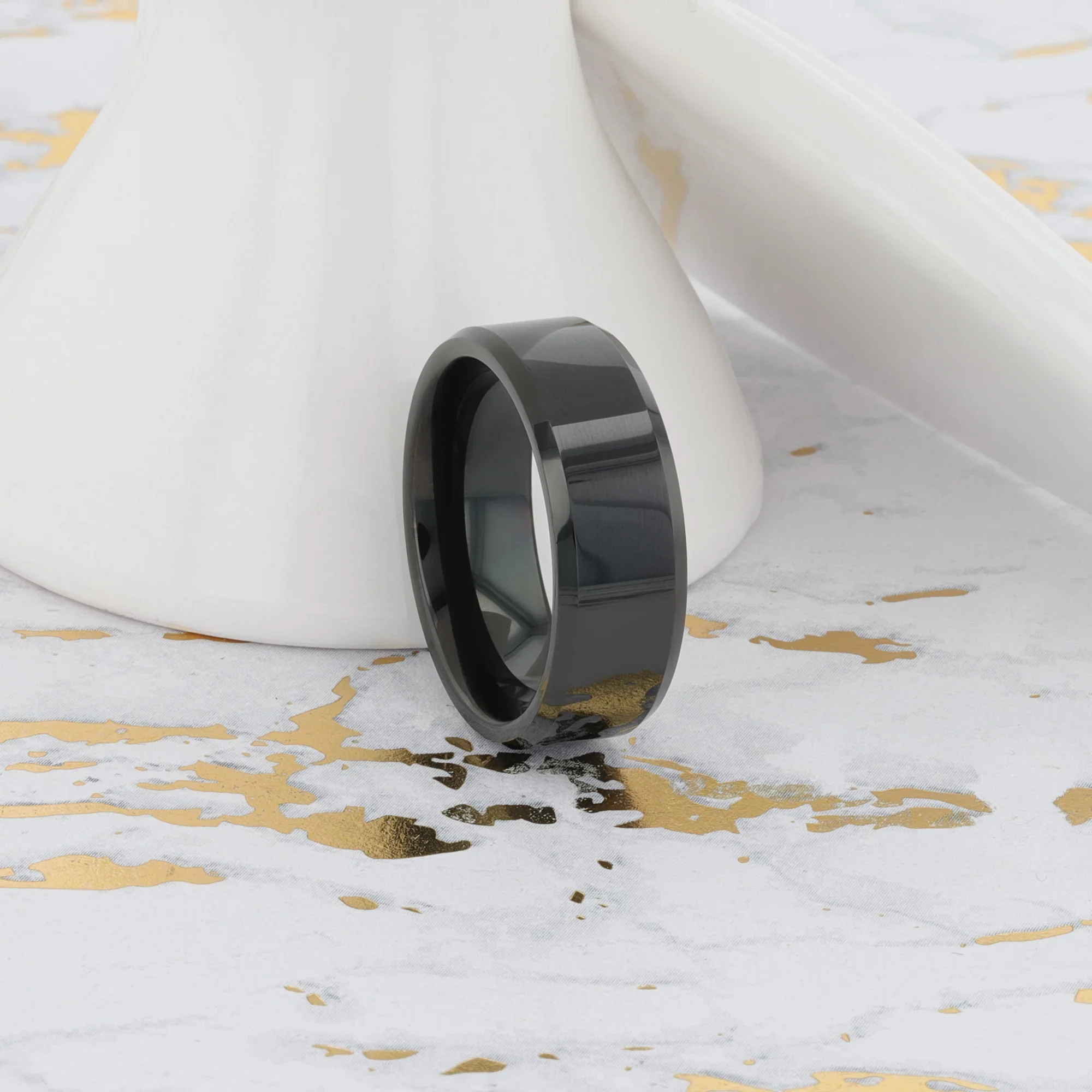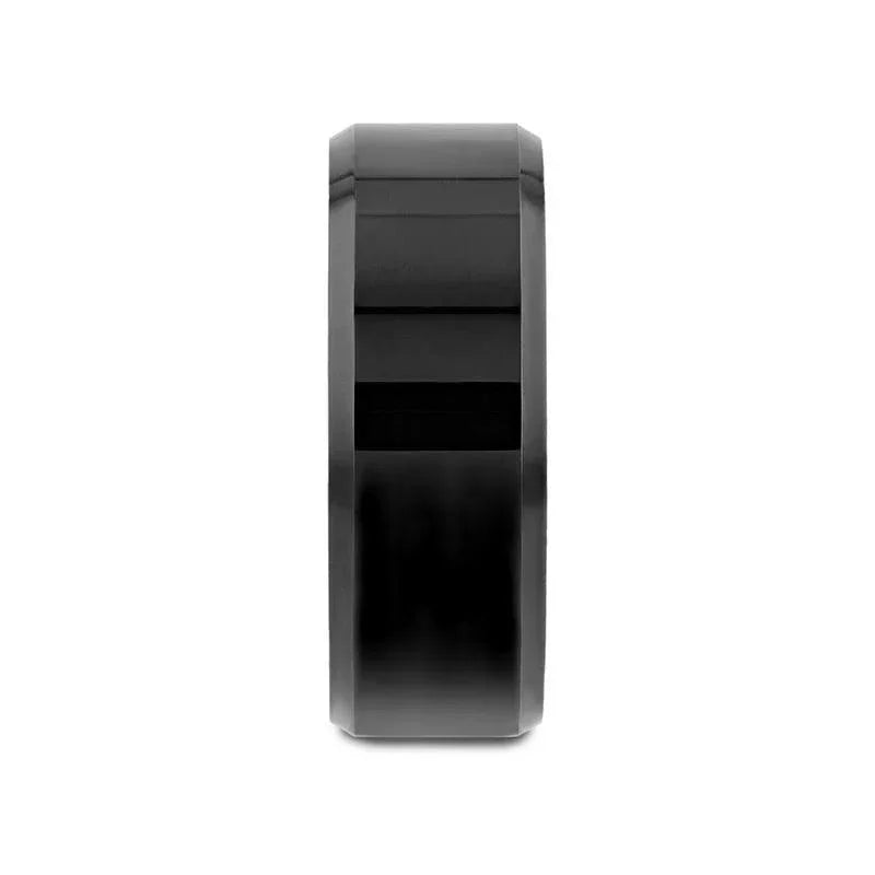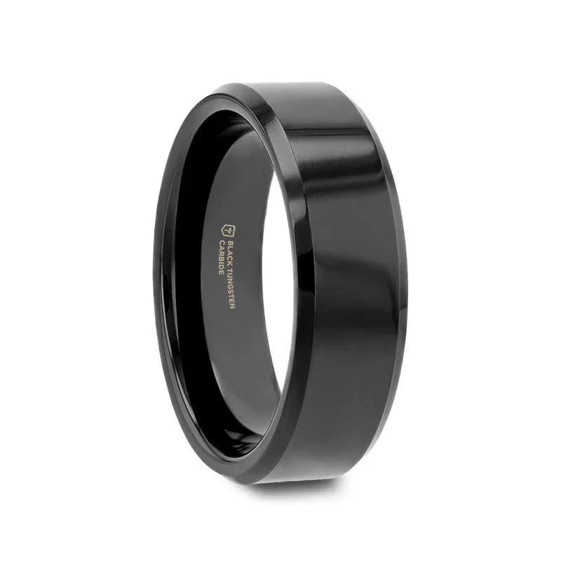 INFINITY Black Tungsten Ring with Beveled Edges, Comfort Fit (4mm–12mm)