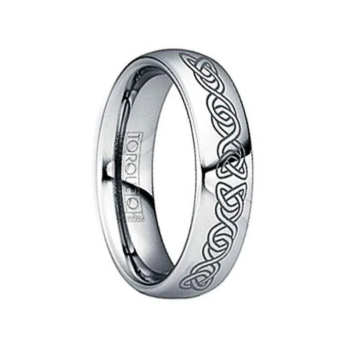 IUNIUS Polished Tungsten Comfort Fit Ring with Black Engraved Celtic Pattern - 6mm