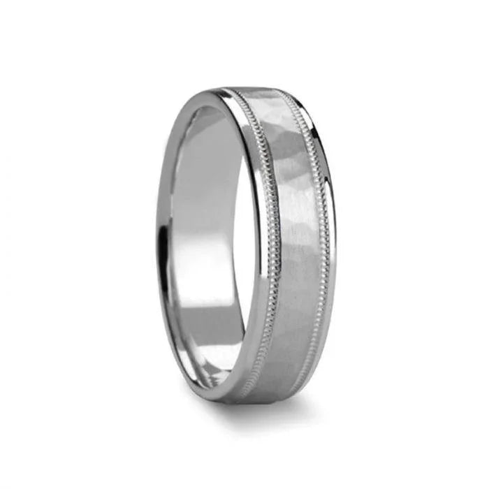 KALLISTO Novell Hammered Finish Silver Wedding Ring with Milgrains - 5mm - 8mm