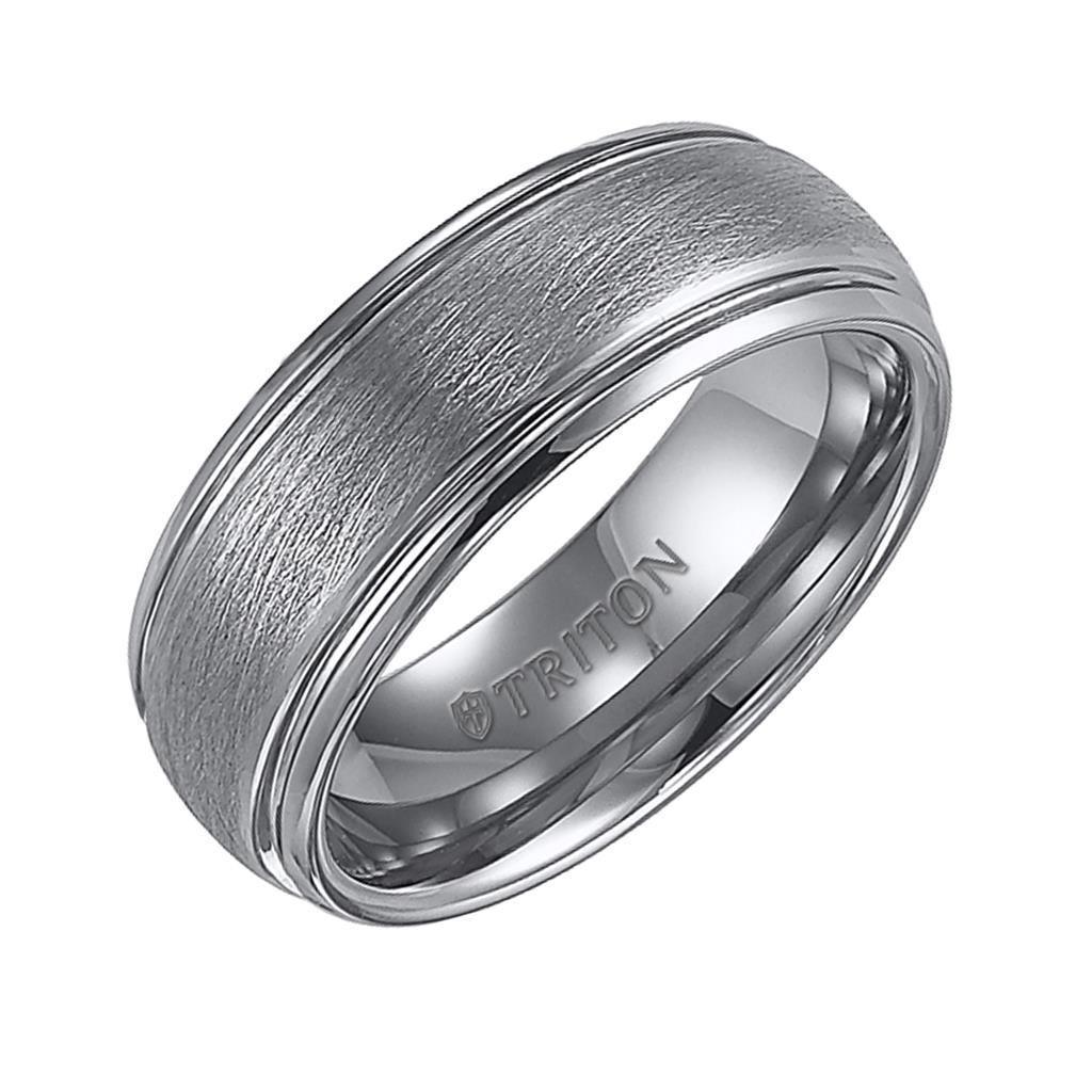 Domed White Tungsten Carbide Ring with Wire Brush Finish and Polished Step Edges by Triton Rings - 8mm
