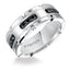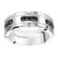 White Tungsten Ring with Silver Inlay and Black Diamonds by Triton Rings - 8mm