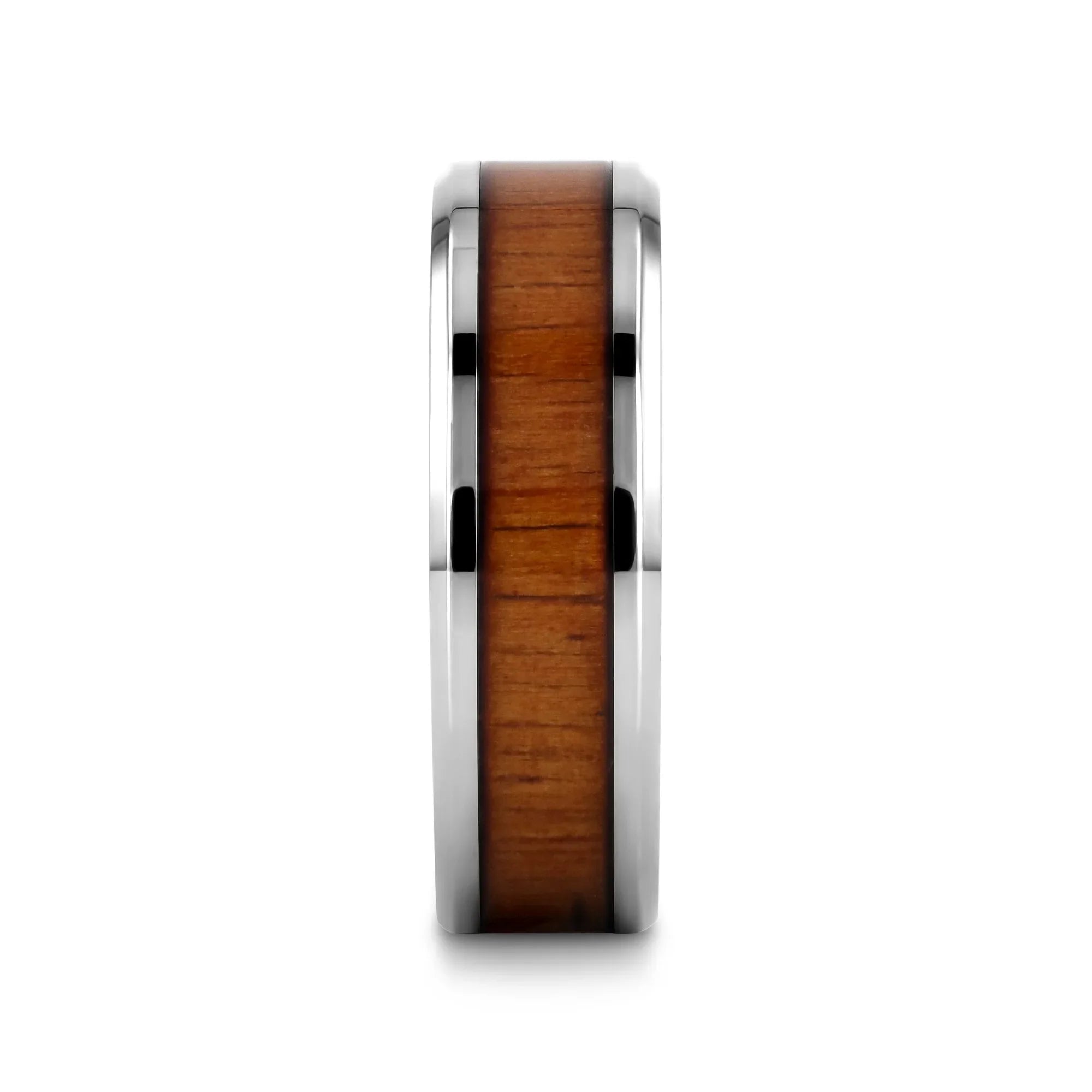 KOAN Titanium Polished Finish Koa Wood Inlaid Men’s Wedding Ring with Beveled Edges - 6mm & 8mm