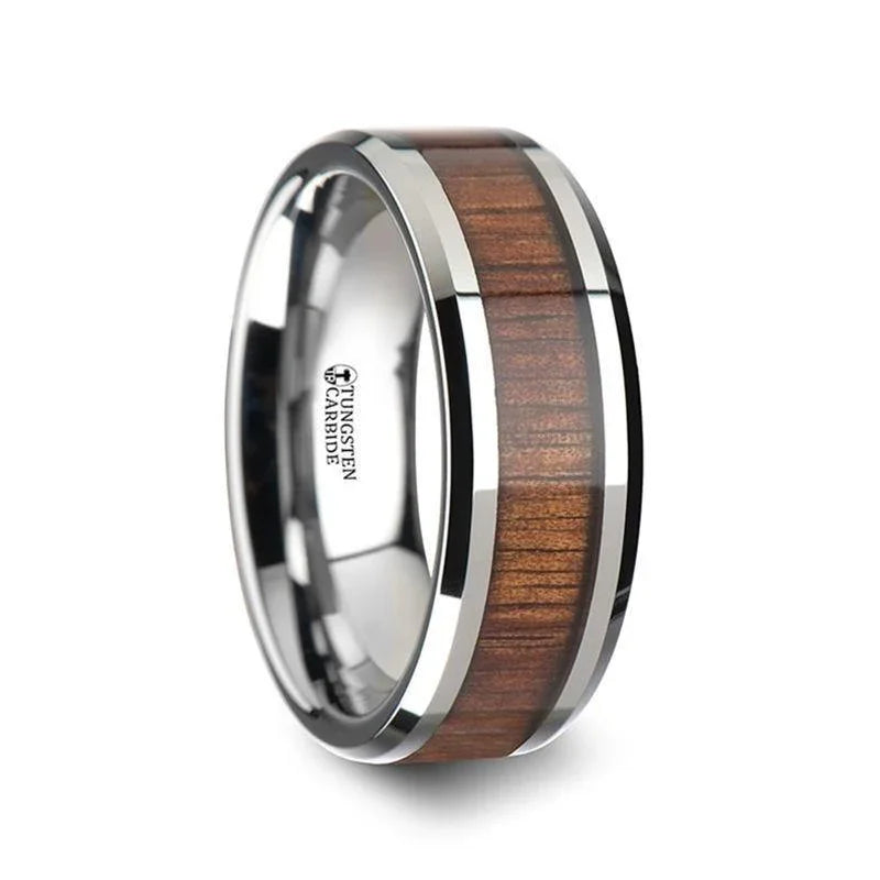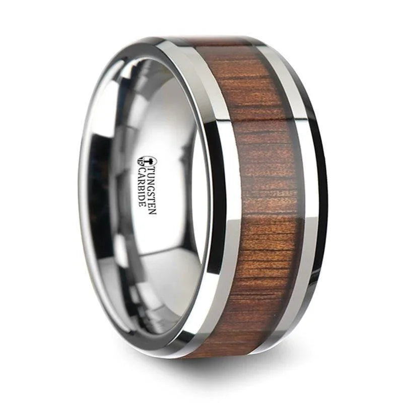 KONA Koa Wood Inlaid Tungsten Carbide Ring with Bevels - 4mm - 12mm