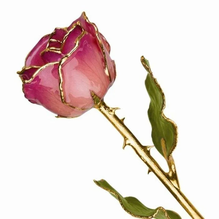 Lacquer Coated Pink Picasso Rose Dipped in Gold