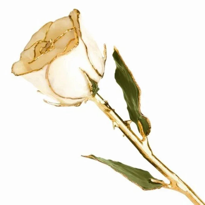 Lacquered Gold Dipped White Long Stem Rose
