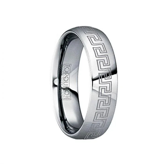 Tungsten Carbide Polished Ring with Engraved Greek Key Pattern - 6mm