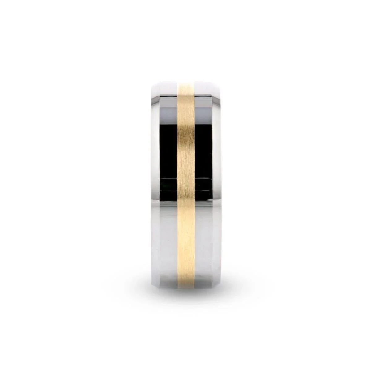 LEGIONAIRE Gold Inlaid Beveled Tungsten Ring - 6mm & 8mm