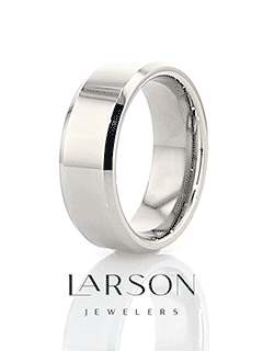 This elegant flat style white tungsten ring with beveled edges from our White Tungsten Wedding Bands line is made especially for couples who love the durability of tungsten and the bright white color of platinum. White tungsten is made by embedding rhodium, a platinum group metal, into the surface of a tungsten ring. The color is very similar to platinum or white gold, which is whiter in color than normal tungsten.