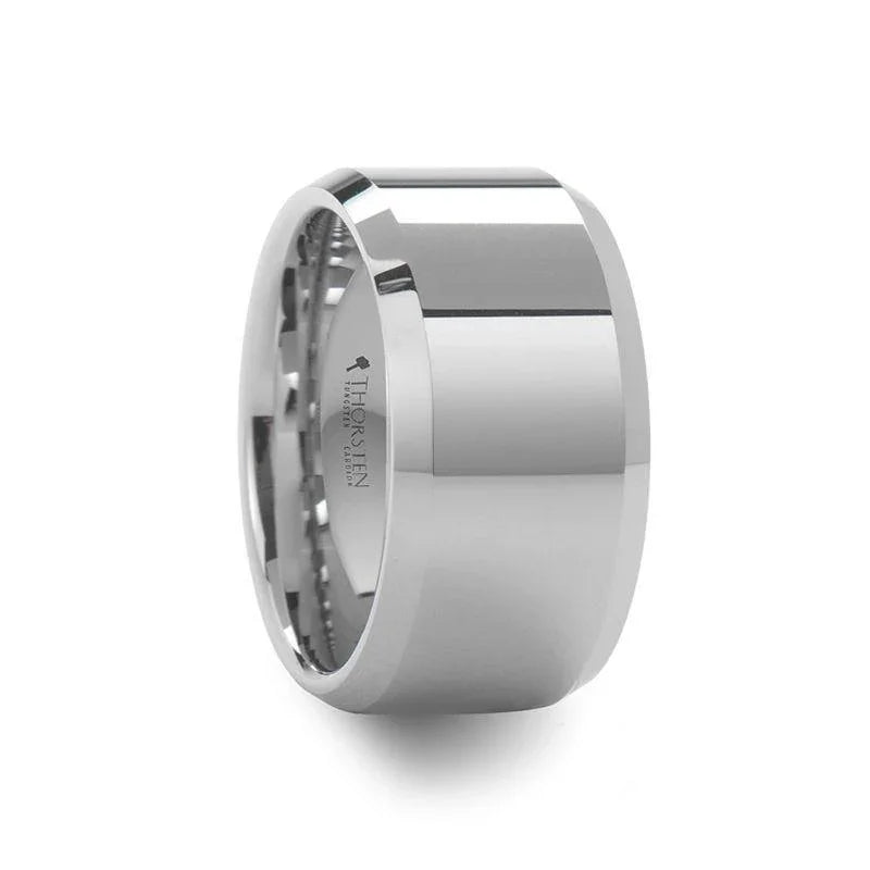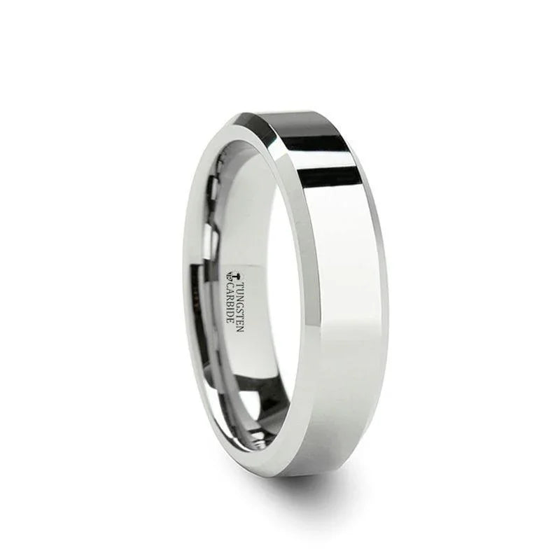 LINCOLN White Tungsten Wedding Band with Beveled Edges - 4mm - 12mm