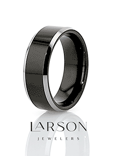 The elegant yet sporty design of this Tungsten Carbide ring by Thorsten features a polished black finished center evoking the look and feel of black sports car. The polished metallic shiny beveled edges give the ring a nice contrast to catch the eye.