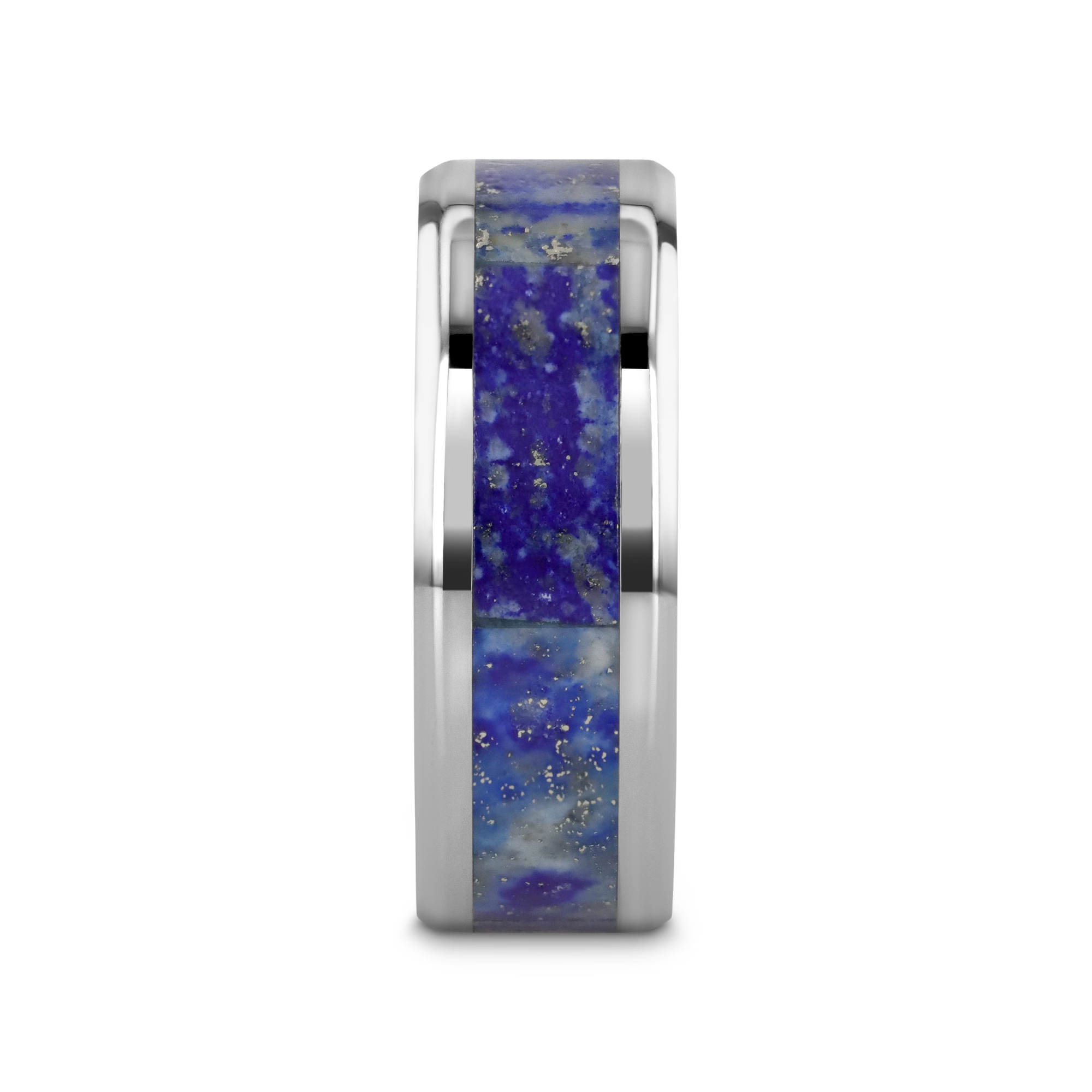 MALONE Men's Titanium Wedding Ring with Lapis Lazuli Inlay and Beveled Edges - 8mm