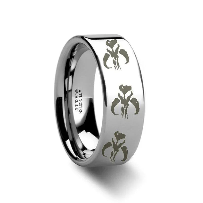 Mandalorian Symbol Star Wars Polished Tungsten Engraved Ring Jewelry - 2mm - 12mm
