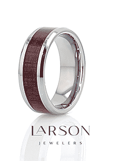 This highly desired rare wood inlay ring is from our wood inlay rings line. This ring consists of an extremely rare and vibrant type of wood called Purpleheart, also known as Peltogyne, amendoim or amaranth. This design brings together the most scratch resistant material and one of the rarest woods on earth. Purpleheart wood is prized for fine inlay work in jewelry and is also used in woordturning, flooring and furniture. This comfort-fit band has beveled edges and comes in an 8 mm width. This is the perfect wedding band to represent your love and commitment. Note, inlay is protected by a resin that can be scratched. Re-sizing and Warranty on all Thorsten alternative metal rings, no exchange|sizing fees.