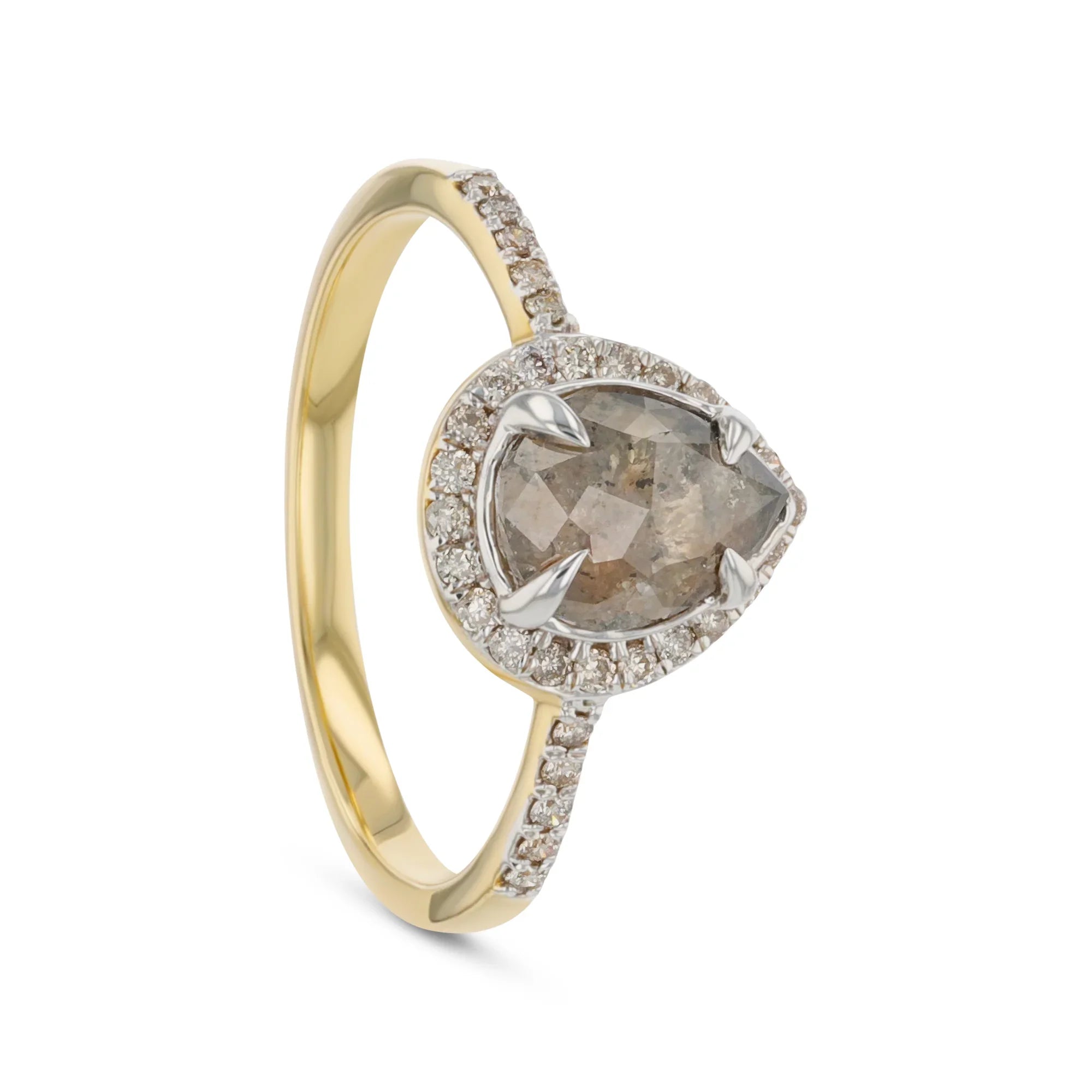 MELA 1.45ct 14K Gold Natural Pear Salt & Pepper Diamond Engagement Ring