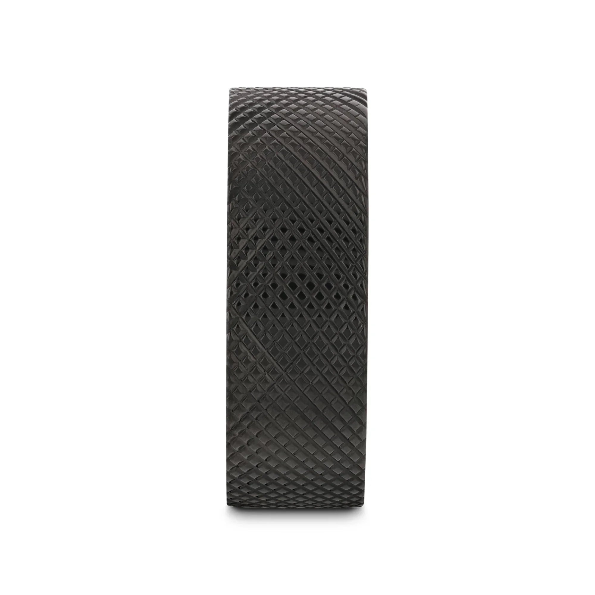 - Knurled Finish: A textured, patterned surface that adds depth and tactile interest, making the ring stand out with its industrial-inspired design.