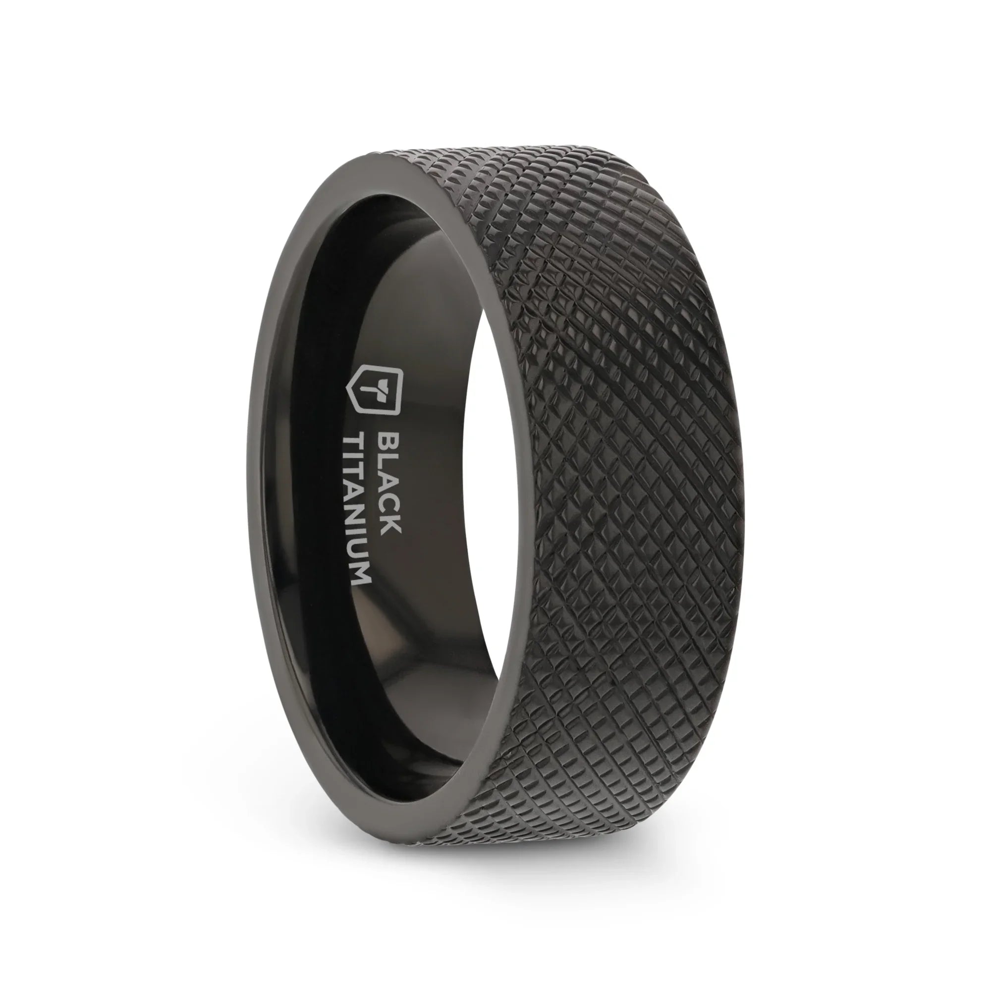MIDNIGHT Flat Black Titanium Ring with Knurled Finish – 8mm