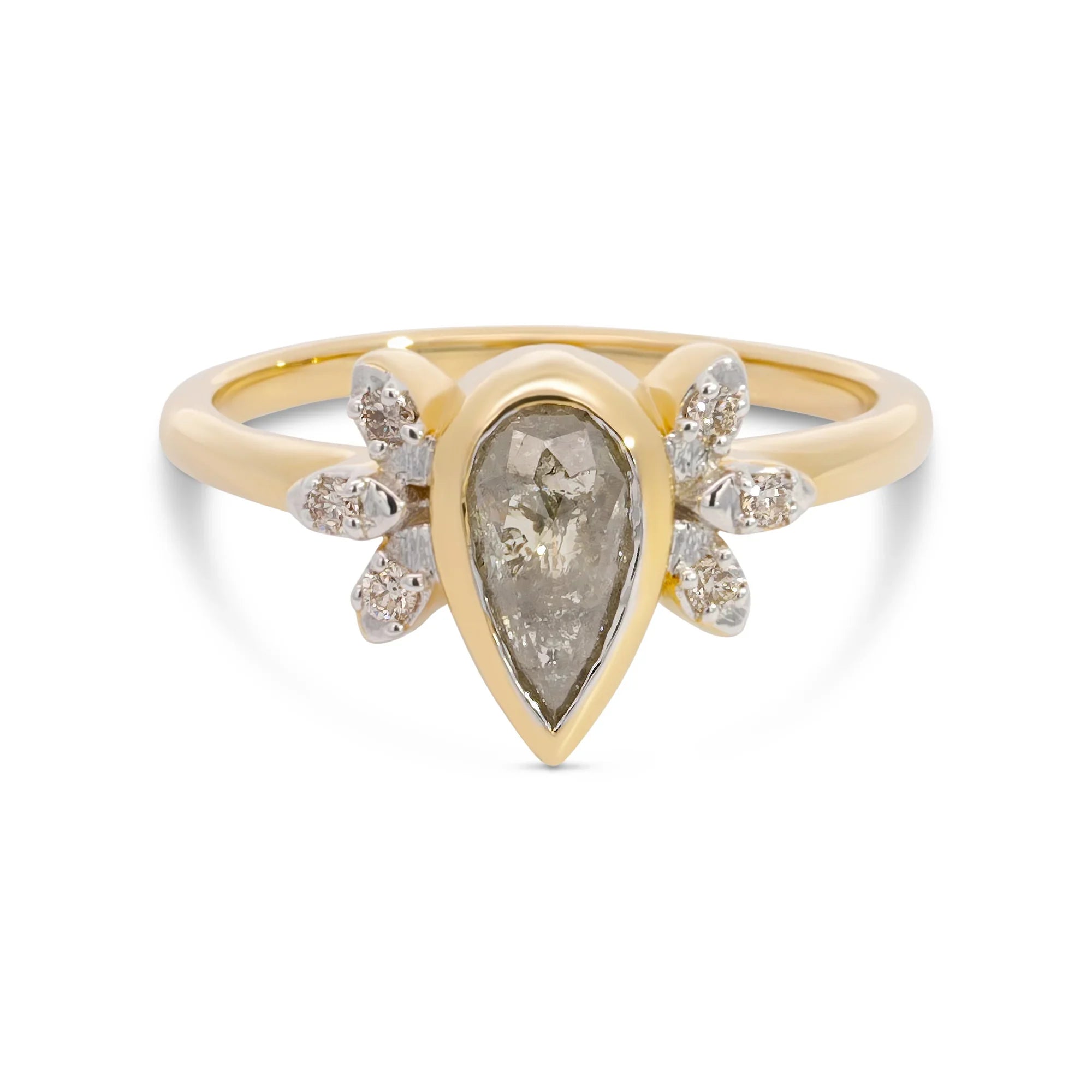 MORRISA 0.78 ct 14K Gold Pear Natural Salt & Pepper Diamond Engagement Ring
