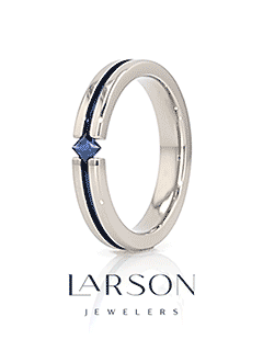 NYMERIA Tension Set Blue Sapphire Titanium Band with Blue Stripe - 4mm