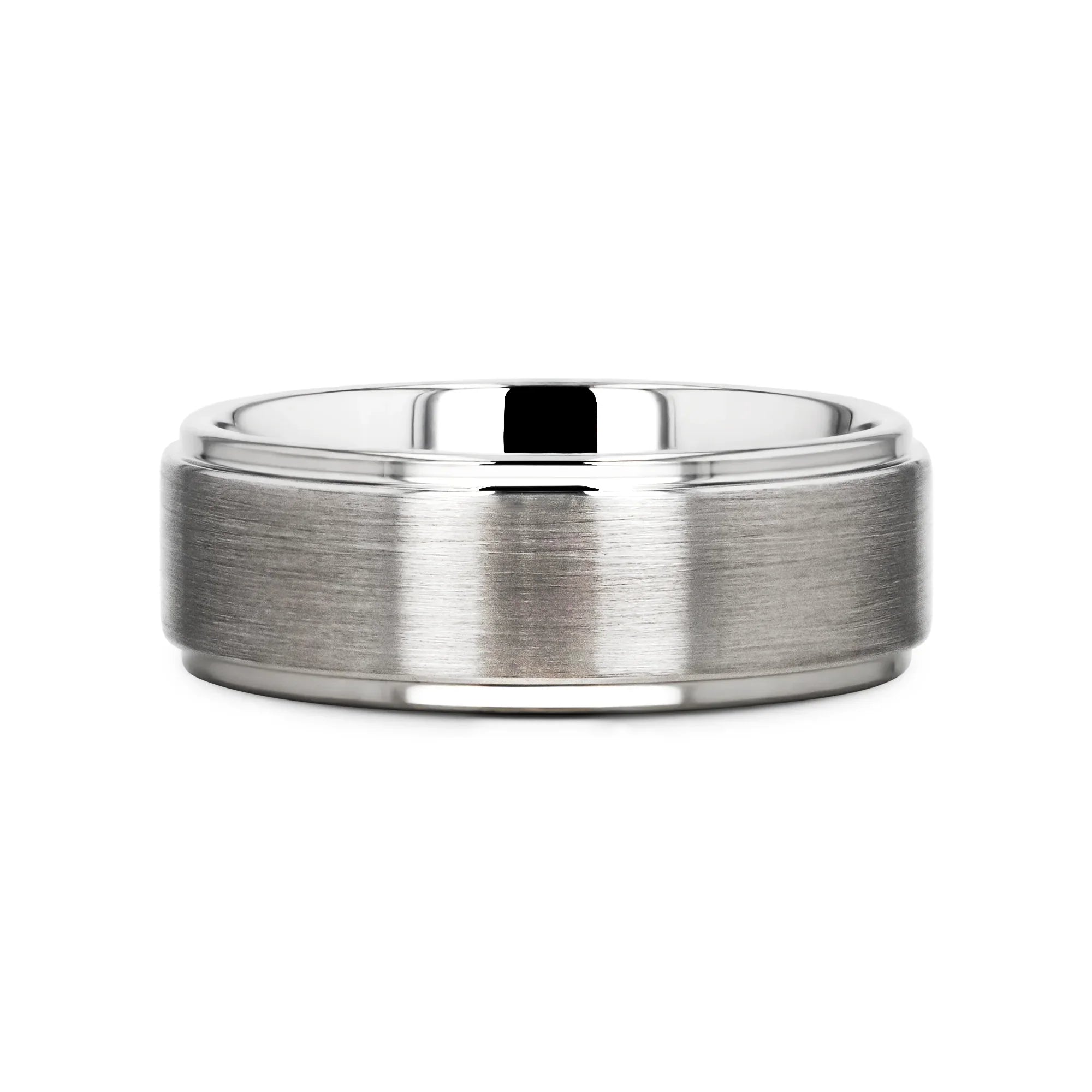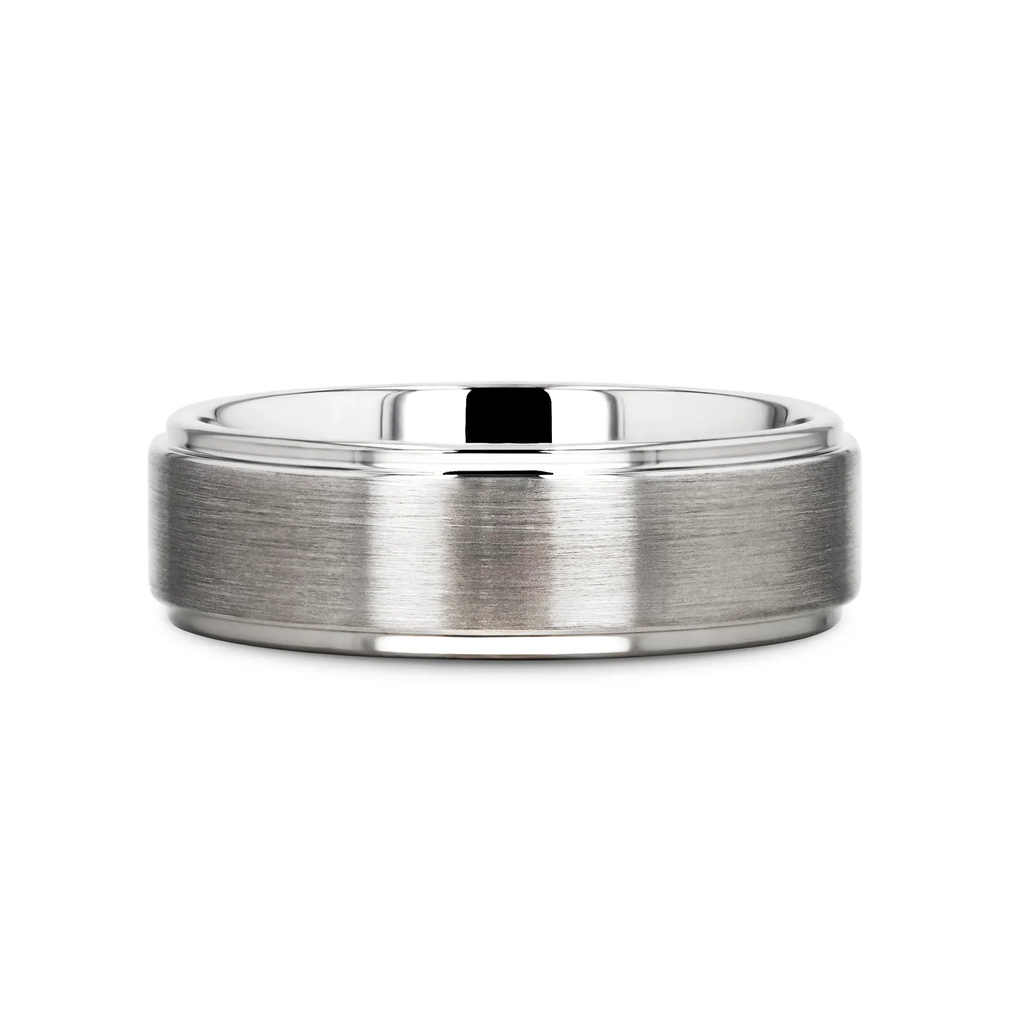 ORLOFF White Tungsten Ring with Raised Brush Finished Center - 6mm & 8mm
