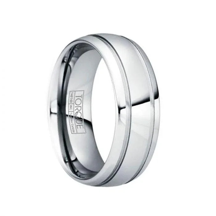 Polished Tungsten Carbide Wedding Band with Dual Grooves - 8mm