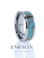 PIERRE Men’s Polished Tungsten Wedding Band with Light Blue Turquoise Stone Inlay & Polished Beveled Edges - 8mm