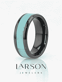 This amazing flat profiled Black Ceramic wedding band design by Thorsten features a beautiful Blue Natural Turquoise inlay, a gem stone that has been prized for thousands of years for its remarkable hue.